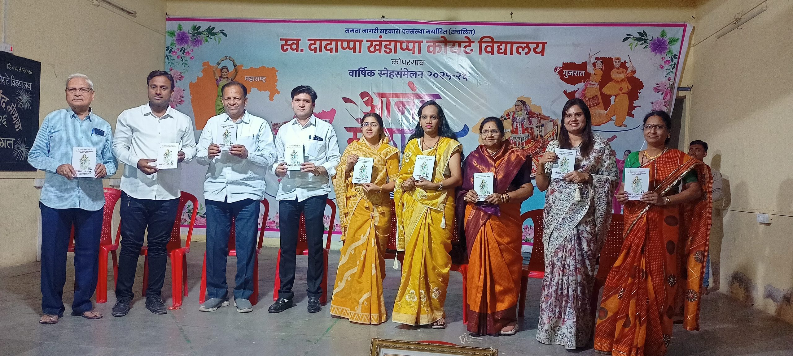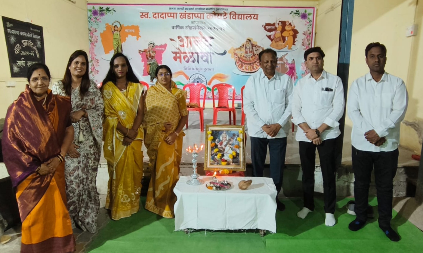 कोपरगाव : समता नागरी सहकारी पतसंस्था संचलित स्व. दादाप्पा खंडाप्पा कोयटे विद्यालयाचे वार्षिक स्नेहसंमेलन व बाल आनंद मेळावा उत्साहपूर्ण वातावरणात संपन्न झाला. विद्यार्थ्यांच्या सर्वांगीण विकासाला चालना देणारा हा कार्यक्रम मोठ्या उत्साहात पार पडला. शैक्षणिक, सांस्कृतिक व व्यावहारिक ज्ञान यांचा संगम या उपक्रमातून अनुभवायला मिळाला. पालक, शिक्षक व विद्यार्थ्यांच्या उत्स्फूर्त सहभागामुळे कार्यक्रमाला विशेष रंगत आली होती.